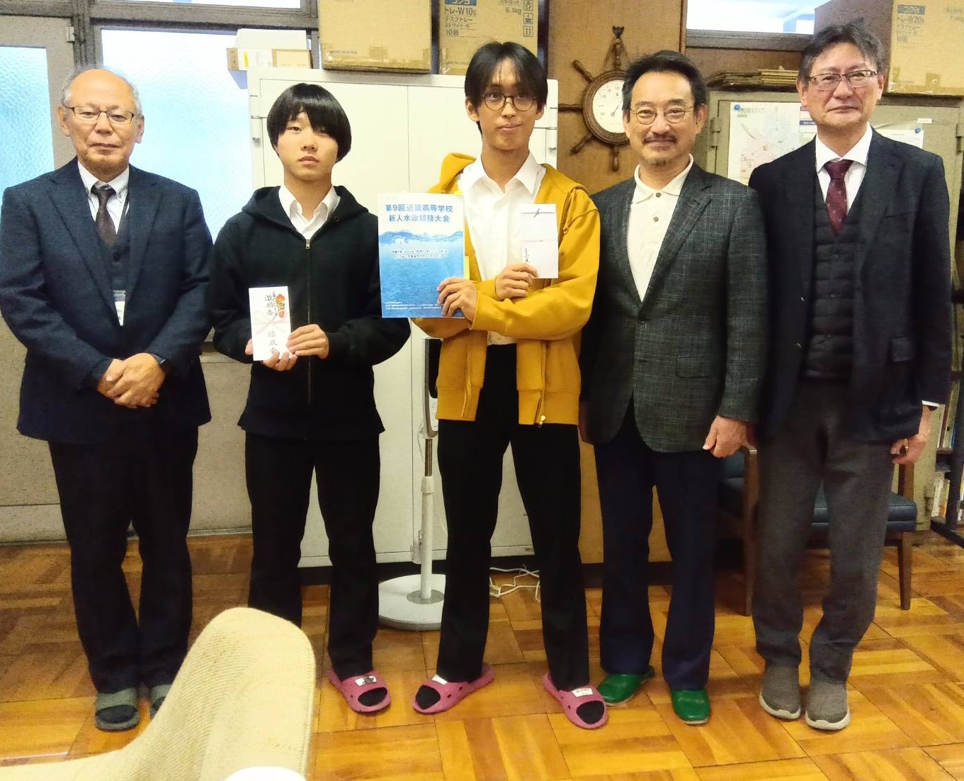 酷暑だった今年の夏はプールサイドも水温も異常に高く、練習は厳しかったそうですが、来年の近畿大会、そしてインターハイに向けて「頑張ります!」と意欲満々でした。 (しばたに)