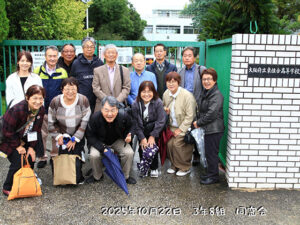 お知らせ トップページお知らせ お知らせ トップページへ 事務局から会員の皆様へお知らせをタイムリーに発信していきます。 2025年10月24日/お知らせ 普通科18期、3年8組の同窓生が「みどりホール」に50年振りに集合! 10月22日(水) 第18期3年8組組の卒業50年を記念して、クラス会を開きました。 14名のクラスメイトが、次々とみどりホールにやって来ました。 姿を見ただけ・・・ 2025年10月21日/お知らせ 10月18日開催、卒業生作品展の出品作 ご紹介 18日に開催された「クラフトワークショップ」と同時開催の卒業生作品展。 開催時間が短くみどりホールまで来場いただけなった皆様はこのページでご覧ください。 (作者・・・ 2025年10月19日/お知らせ 楽しい時間をみんなで共有、クラフトワークショップ&作品展 開催! 手作りの楽しさを皆んなで!そんな思いを込めて企画した緑友会イベントに事前に申し込んだ19期から28期のみなさんが参加されました。 今回は同じ絵柄の紙を切り抜き、・・・ 2025年10月12日/お知らせ 39期 同窓会 12月28日(日)開催のお知らせ! 39期同窓会、12月28日(日)開催・・・ 2025年10月7日/お知らせ 人生を映画と共に、普通科17期生、映画監督 岡田有甲さんをインタビューしました。 岡田有甲監督を取材して インタビュー&文:山口文子(普通科18期) まだまだ酷暑厳しい8月の末、岡田有甲監督(17期)が、緑友会の事務所を訪れ、インタビューの取・・・ 2025年10月4日/お知らせ 「芸文30周年記念の集い」盛大に開催! <「芸能文化科30周年記念の集い」の幹事さん一同からのご報告です。約70人が参加されました。> 9月27日(土)に、芸能文化科(以下「芸文」)30周年を記念する・・・ 2025年10月2日/お知らせ 10月18日(土)は秋のホームカミングデイ、今回は作品展とワークショップ見学、卒業生以外の方も歓迎! 10月18日(土)みどりホールでは卒業生の作品を展示します。時間は12時30より3時30分まで、短い時間ですが絵画、手芸、工芸作品の展示を行います。 同時開催の・・・ 2025年9月28日/お知らせ 7期生、米澤秀和(歌手名、米沢ひでかず)さんからChannel R 宛にお便りをいただきました。 7期生、歌手の米澤秀和さんから近況報告・・・ 2025年9月7日/お知らせ 文化祭に合わせてホームカミングデイを開催、多くの卒業生が「みどりホール」を訪れました。 ホームカミングデイ開催! (広報 小野元久) 9月6日、土曜日、台風一過の青空のもと、東住吉高校の文化祭が盛大に行われました。あわせて緑友会もホームカミングデ・・・ 2025年9月3日/お知らせ 9月6日ヒガスミ、ホームカミングデイに映画監督、岡田有甲さんが来校! 今週末、母校の文化祭に合わせて緑友会主催のホームカミングデイを実施、場所は「みどりホール」。 9時〜14時まで、バザーなどを開催。 その場に、この秋公開の劇場映・・・ 2025年9月1日/お知らせ 東住吉高校の姉妹校である台湾の育成高級中学校との交流を記録した動画を公開! 8月18日(月)に海外の姉妹校である台湾市立育成高級中学校のバレーボール部、男女40人ほどが来校し、 本校男女バレーボール部と交流試合を行いました。 試合前には・・・ 2025年9月1日/お知らせ 文化祭当日はホームカミングデイ。是非ご来校ください。 ホームカミングデイはみどりホールをお訪ねください。 広報委員:寺田 東住吉高等学校の恒例行事、文化祭は9月5日、6日の・・・ 123…9